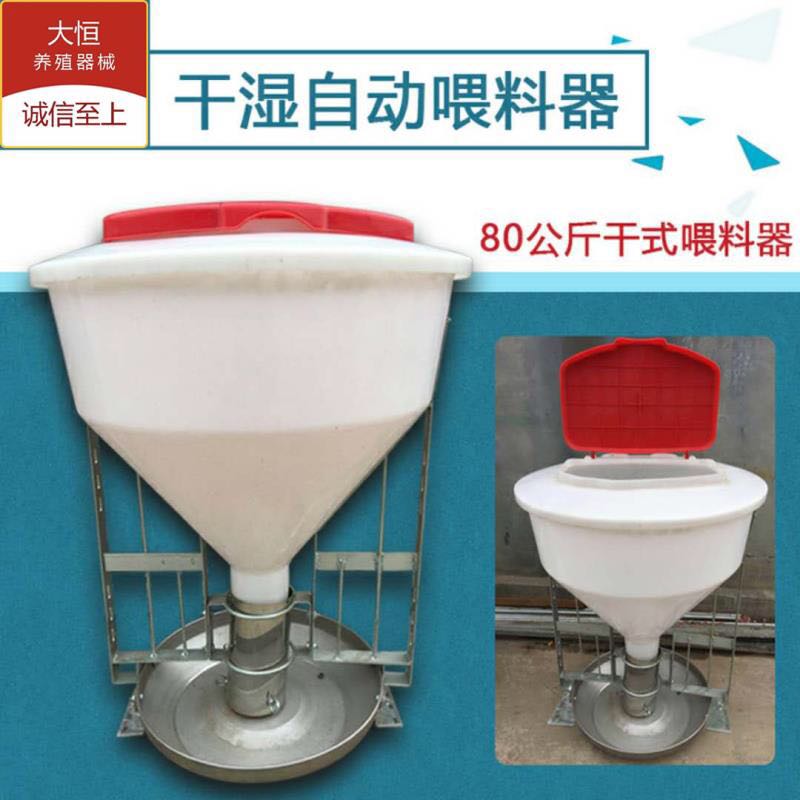 3、在原有的基礎上又添加了自動(dòng)下料器,本產(chǎn)品具有全天侯食功能,豬生長(cháng)均勻,而且節省飼料,一人可喂400頭,用它每頭豬可節省飼料20-30斤,提前出欄20-30天左右.是地上拋食喂法5-10倍的效率,是現代養豬廠(chǎng)理想的更新?lián)Q代產(chǎn)品